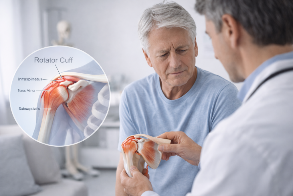 Para entender se uma lesão do manguito rotador precisa de cirurgia, é importante primeiro compreender o papel dessa estrutura. O manguito rotador é formado por quatro músculos e seus respectivos tendões, que envolvem a cabeça do úmero e ajudam a manter o ombro estável durante o movimento.